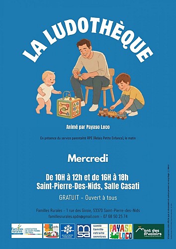 L'atelier "La Ludothèque" propose un espace ludique sécurisé, spécialement conçu pour favoriser les moments de jeu en famille. Il offre un environnement accueillant et sûr où les parents et enfants peuvent s'amuser ensemble. Des professionnels spécialisés dans le domaine de la petite enfance, en collaboration avec le réseau Relais Petite Enfance (RPE), sont présents pour veiller au bon déroulement des activités et assurer la sécurité des enfants.